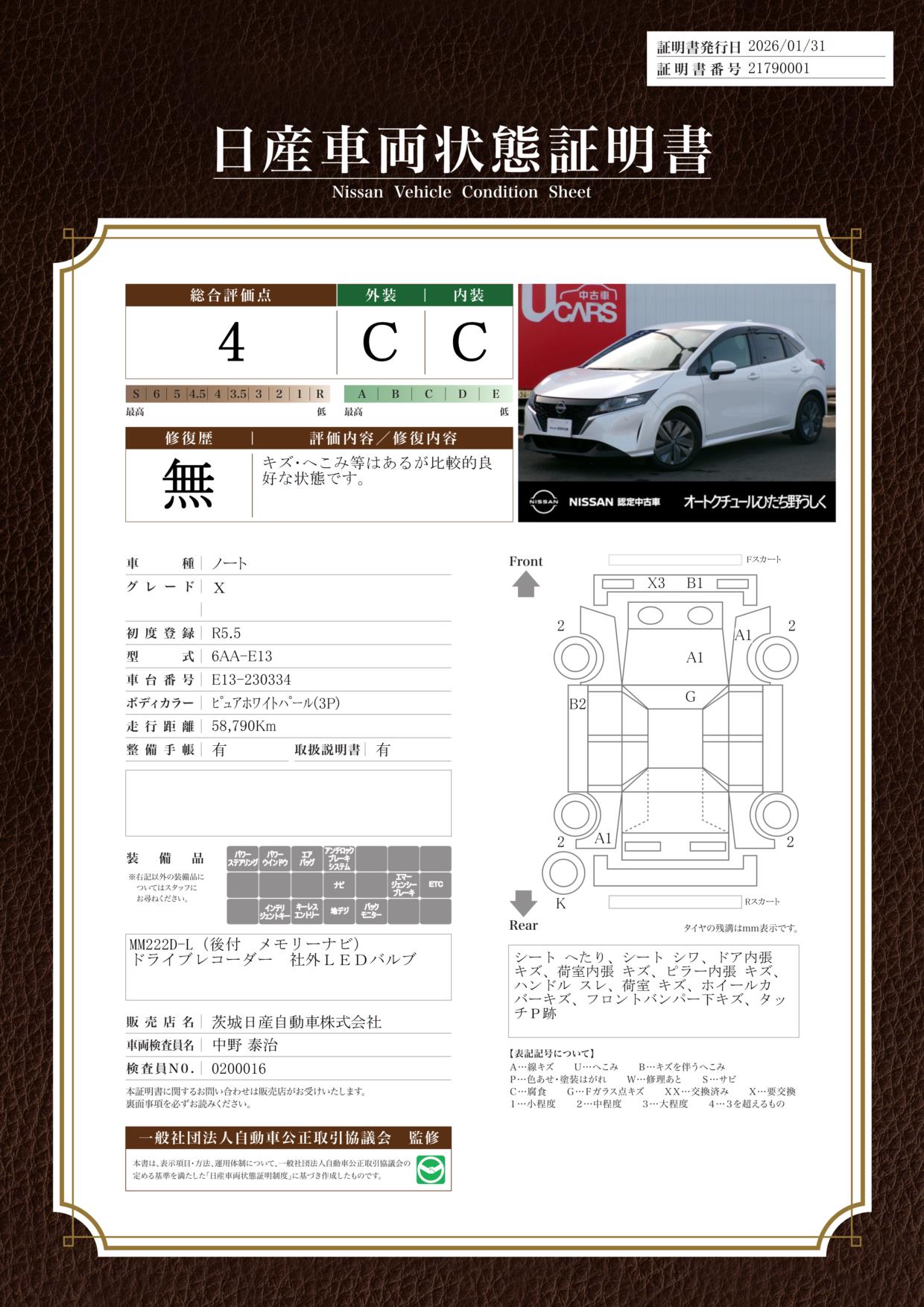 現状括弧書き内の年月まで車検有効期限が残っていますが、ご成約時に新しく車検を取り直します。なお取り直しの費用は車両価格に含まれています。