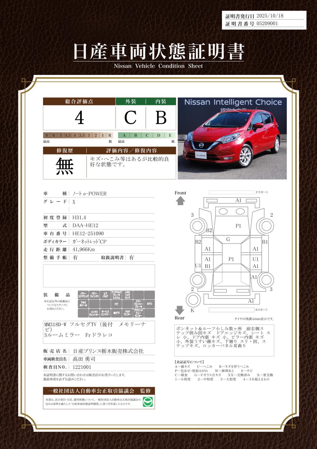 エンジンで発電した電気で走るeーPOWER♪純正メモリーナビ(MM318D-W)/アラウンドビューモニター/LEDヘッドライト/15インチAW/