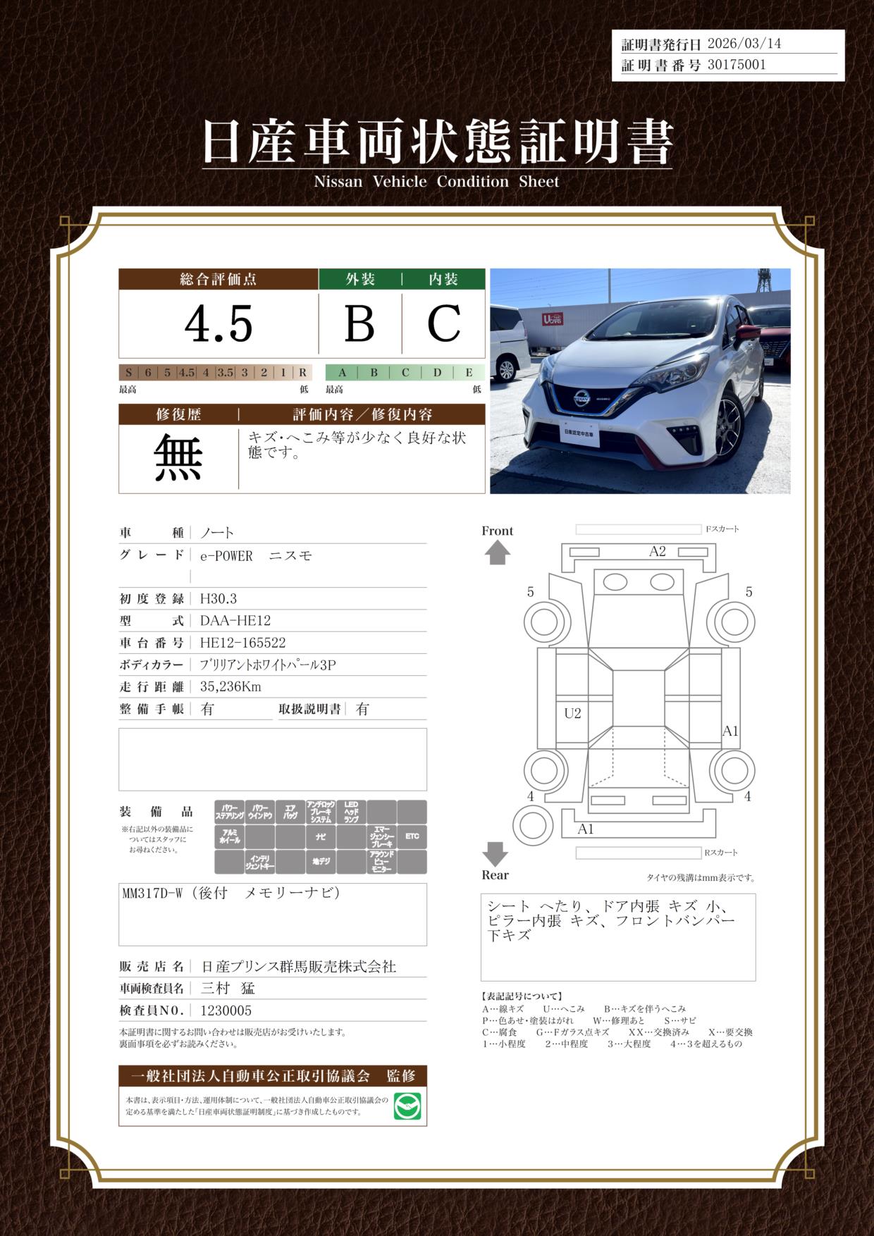 日産自動車認定の中古車販売店です。