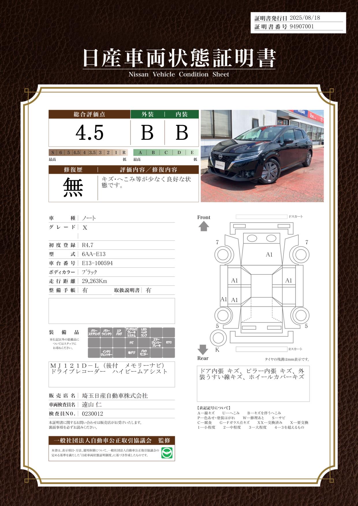 日産自動車認定の中古車販売店です。