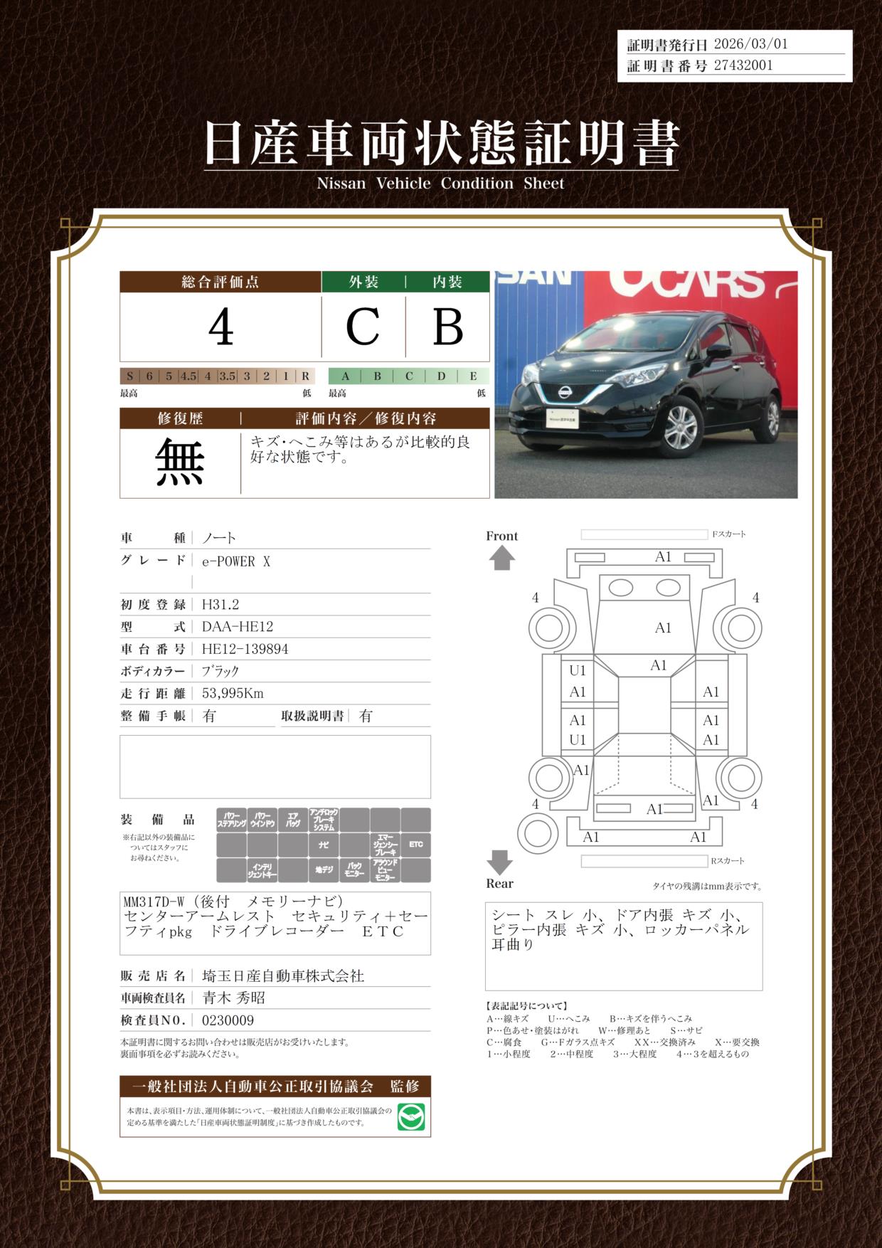 日産自動車認定の中古車販売店です。