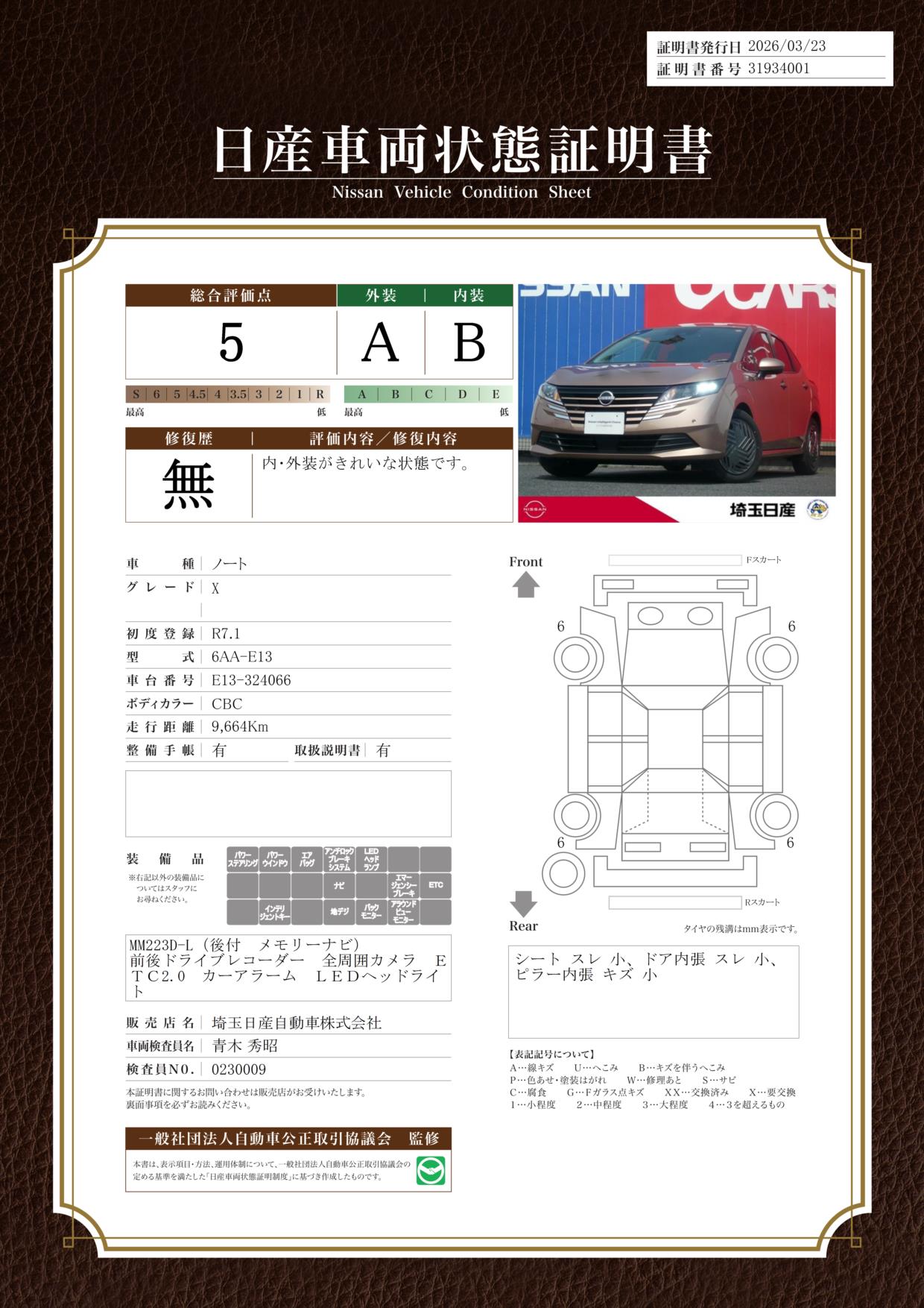 「車両状態証明書」は、査定協会監修のプロの検査員が公正かつ確かな基準で検査した”安心の証”です。