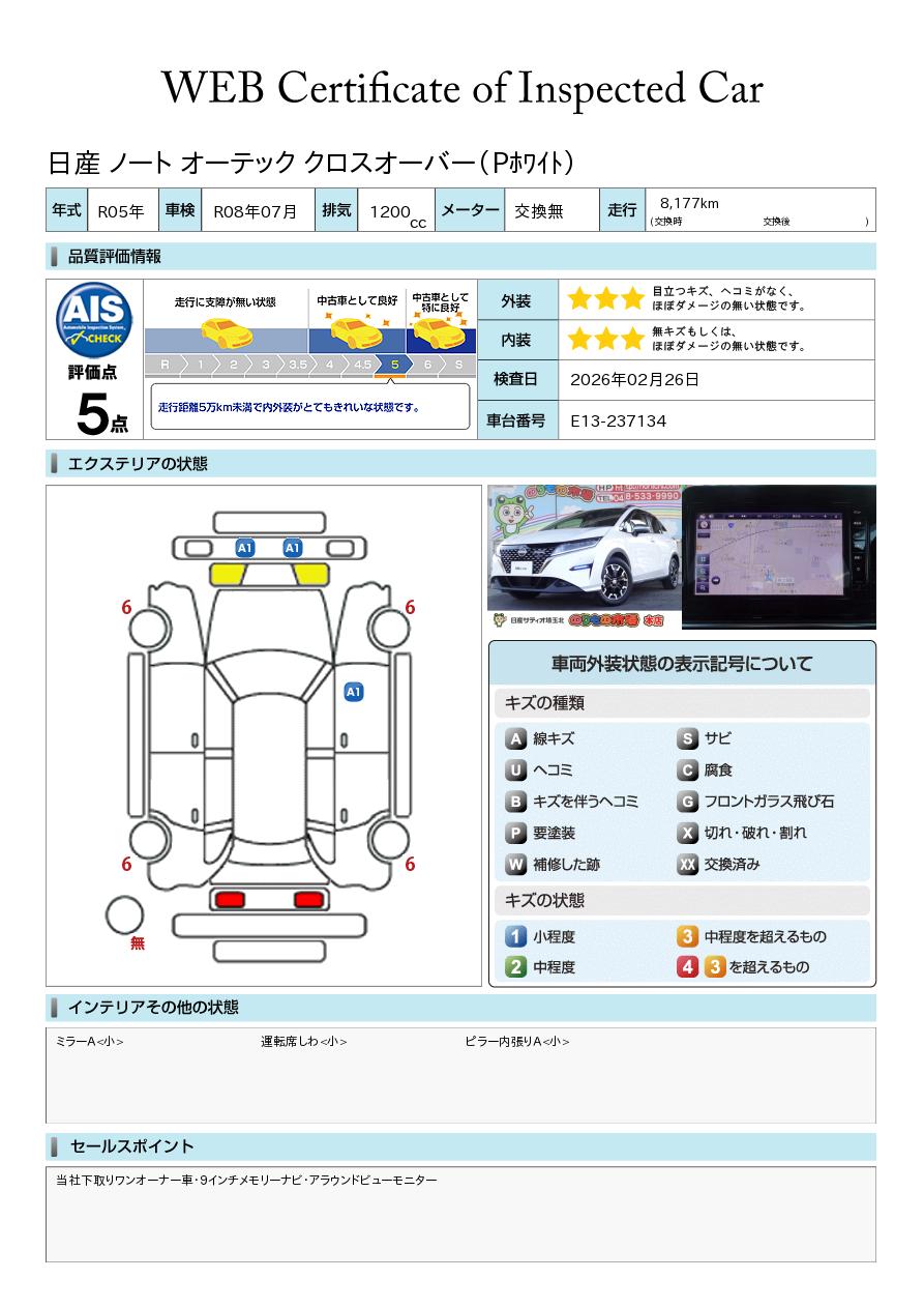 現状括弧書き内の年月まで車検有効期限が残っていますが、ご成約時に新しく車検を取り直します。なお取り直しの費用は車両価格に含まれています。