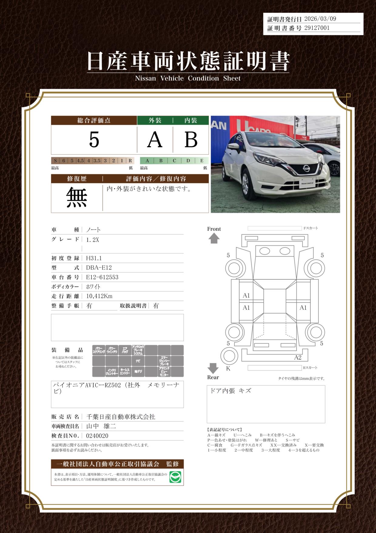 日産車両状態証明