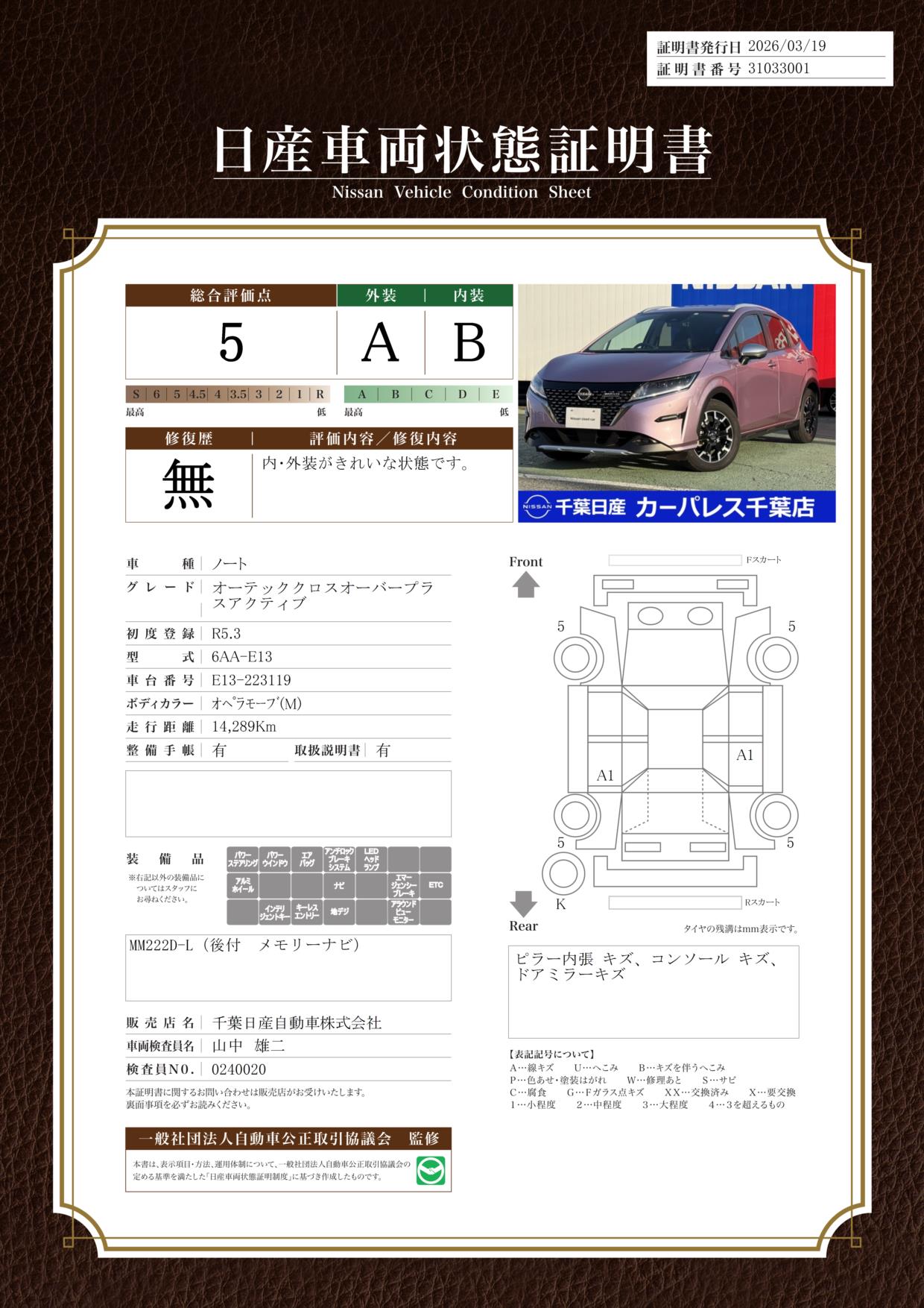 ノート 1200cc 1.2 AUTECH クロスオーバー 当社試乗車up