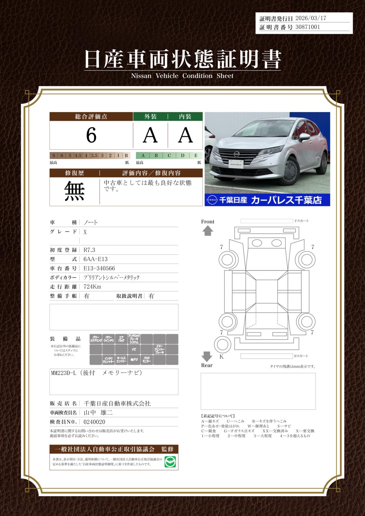 日産車両状態証明