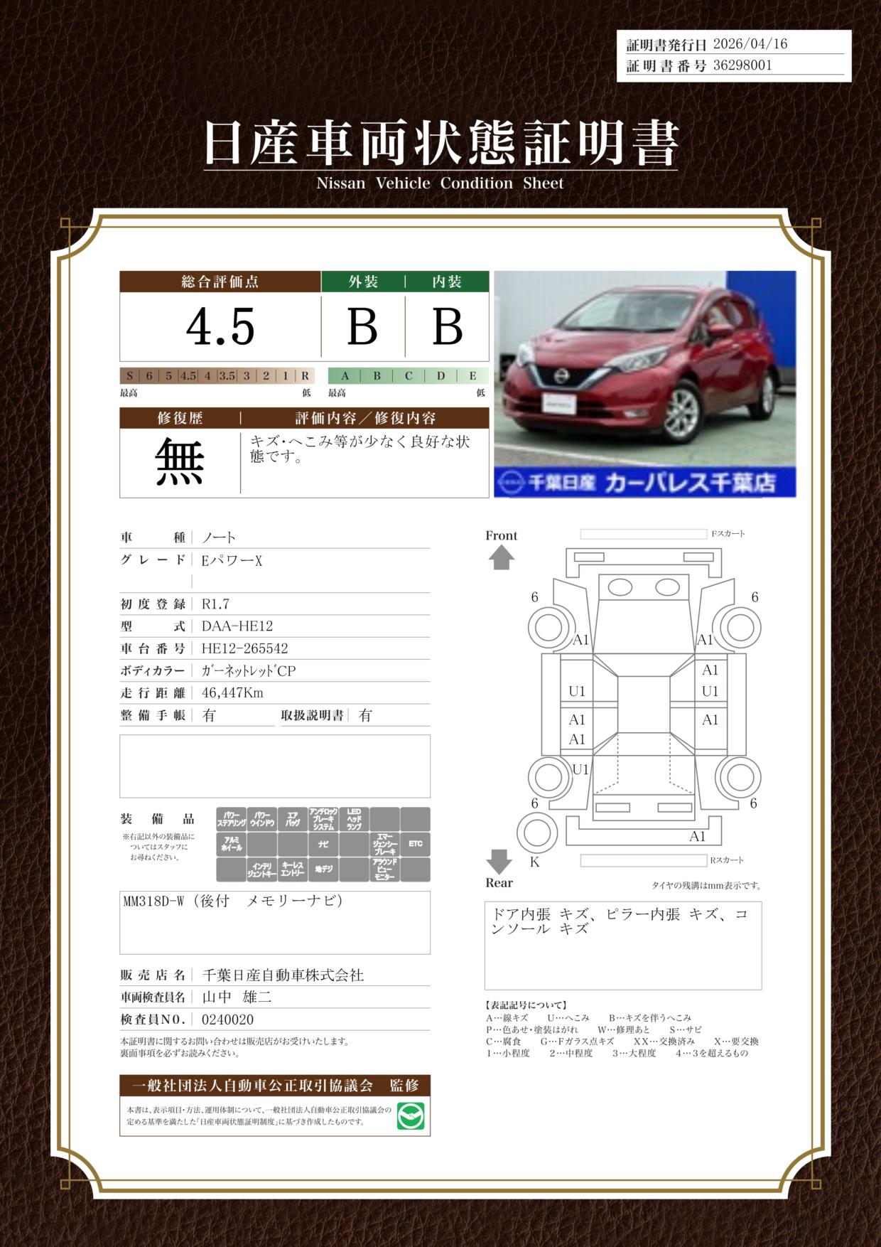 ノート 1200cc 1.2 X ワンオーナー・純正ドラレコ・LED