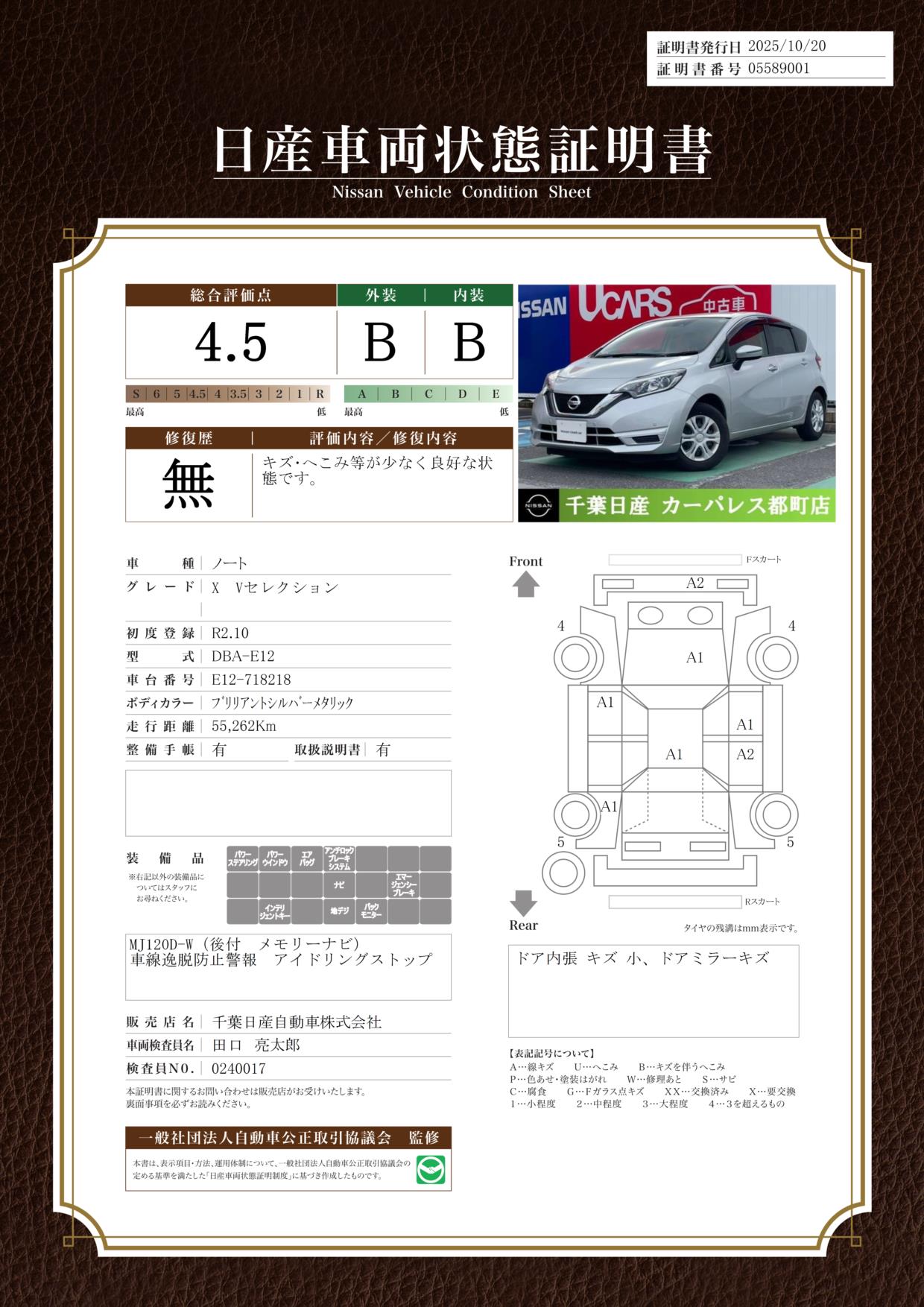 ノート 1200cc 1.2 X 当社試乗車UPアラウンドビューモニター純正