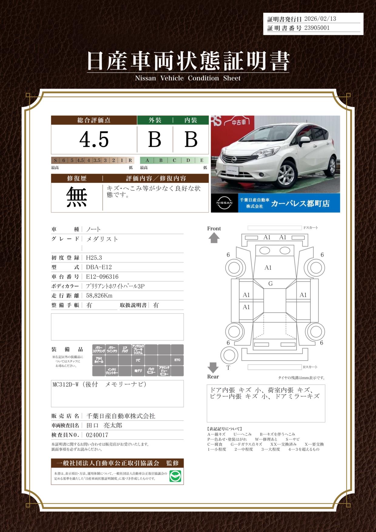 ●日産認定のクオリティショップです。日産プレミアム認定中古車、日産認定中古車、日産電動車を中心とした高品質な中古車を展示しております。 ●日産の中古車無料保証「ワイド保証」つきで安心です。他社の保証内容とぜひ見比べてください。 ●国道126号線沿いでアクセス抜群です。 ●キッズスペースもございますのでお子様連れでも安心です。 ●最寄り駅: JR千葉駅 ※公共交通機関でご来場のお客様はお声がけください。お迎えにあがります。 ●リモート商談も可能です。