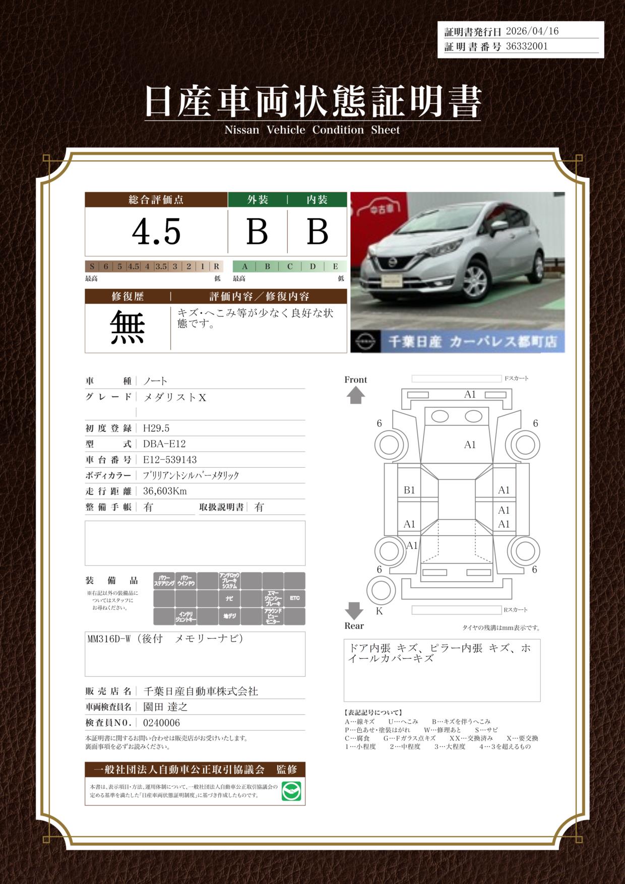 ノート 1200cc 1.2 X ワンオーナー・純正ドラレコ・LED