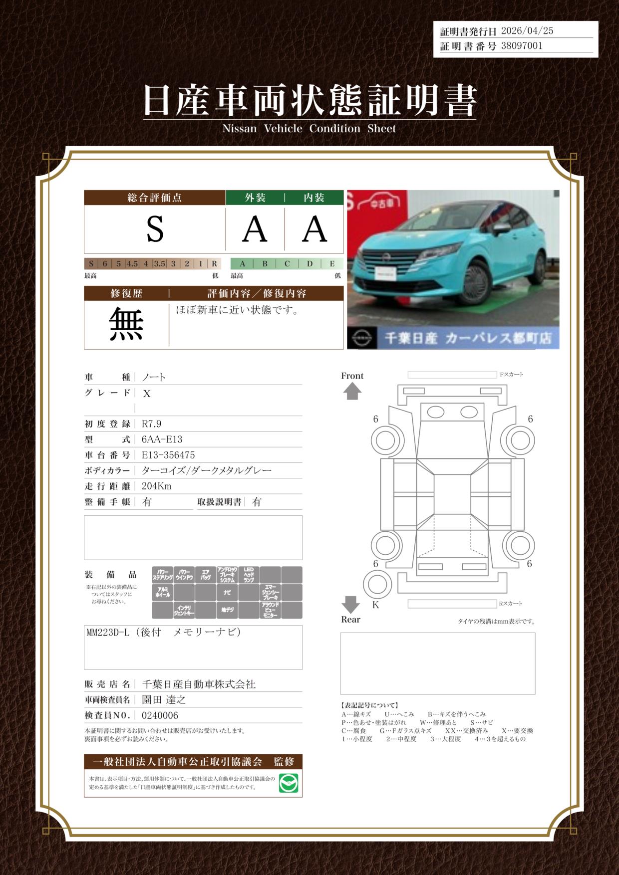 ●日産認定のクオリティショップです。日産プレミアム認定中古車、日産認定中古車、日産電動車を中心とした高品質な中古車を展示しております。 ●日産の中古車無料保証「ワイド保証」つきで安心です。他社の保証内容とぜひ見比べてください。 ●国道126号線沿いでアクセス抜群です。 ●キッズスペースもございますのでお子様連れでも安心です。 ●最寄り駅: JR千葉駅 ※公共交通機関でご来場のお客様はお声がけください。お迎えにあがります。 ●リモート商談も可能です。