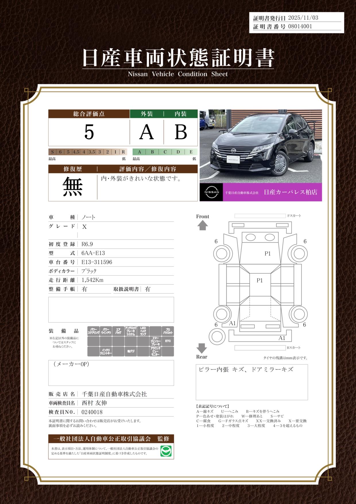ノート 1200cc 1.2 e-POWER X 純正ナビAビューカメラ