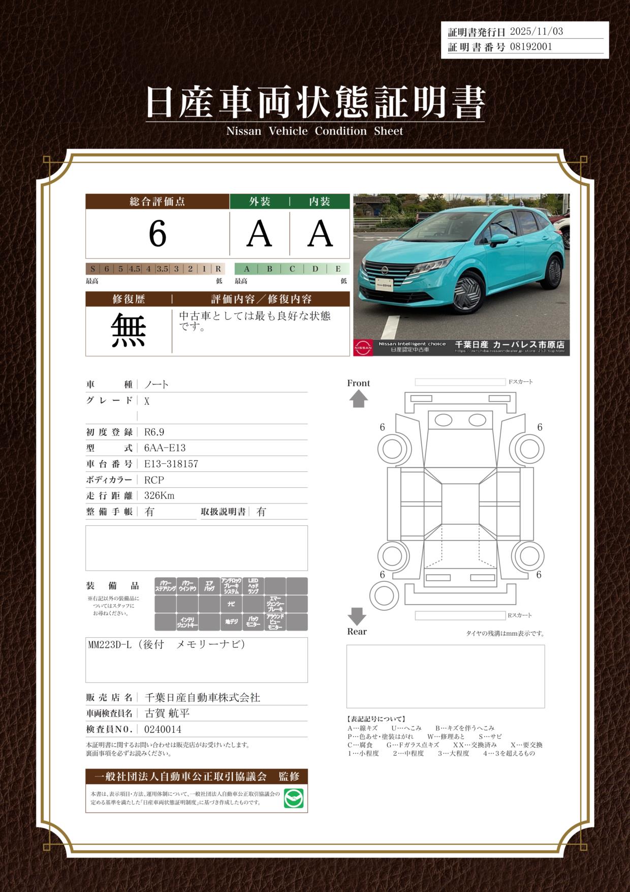 ノート 1200cc 1.2 X 当社試乗車UPアラウンドビューモニター純正