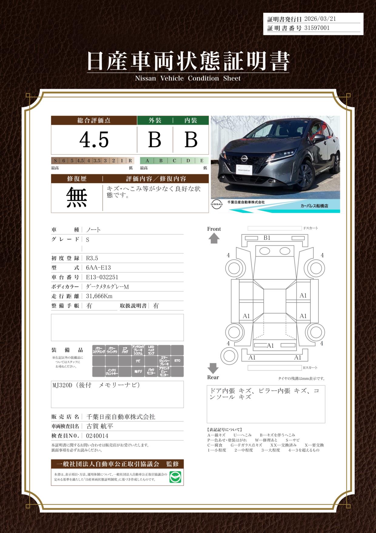 ●展示可能台数100台以上の大規模展示場で、千葉日産・日産プリンス千葉の在庫を一度にご覧いただける2社合同の中古車店舗です。 ●日産プレミアム認定中古車、日産認定中古車、日産電動車を中心とした高品質な中古車をご覧ください。 ●日産の中古車無料保証「ワイド保証」つきで安心です。他社の保証内容とぜひ見比べてください。 ●店内にはキッズスペースもございますのでお子様連れでも安心です。 ●船取県道(県道8号船橋我孫子線)沿いのお店です。 ●公共交通機関でご来場のお客様はお声がけください。お迎えにあがります。