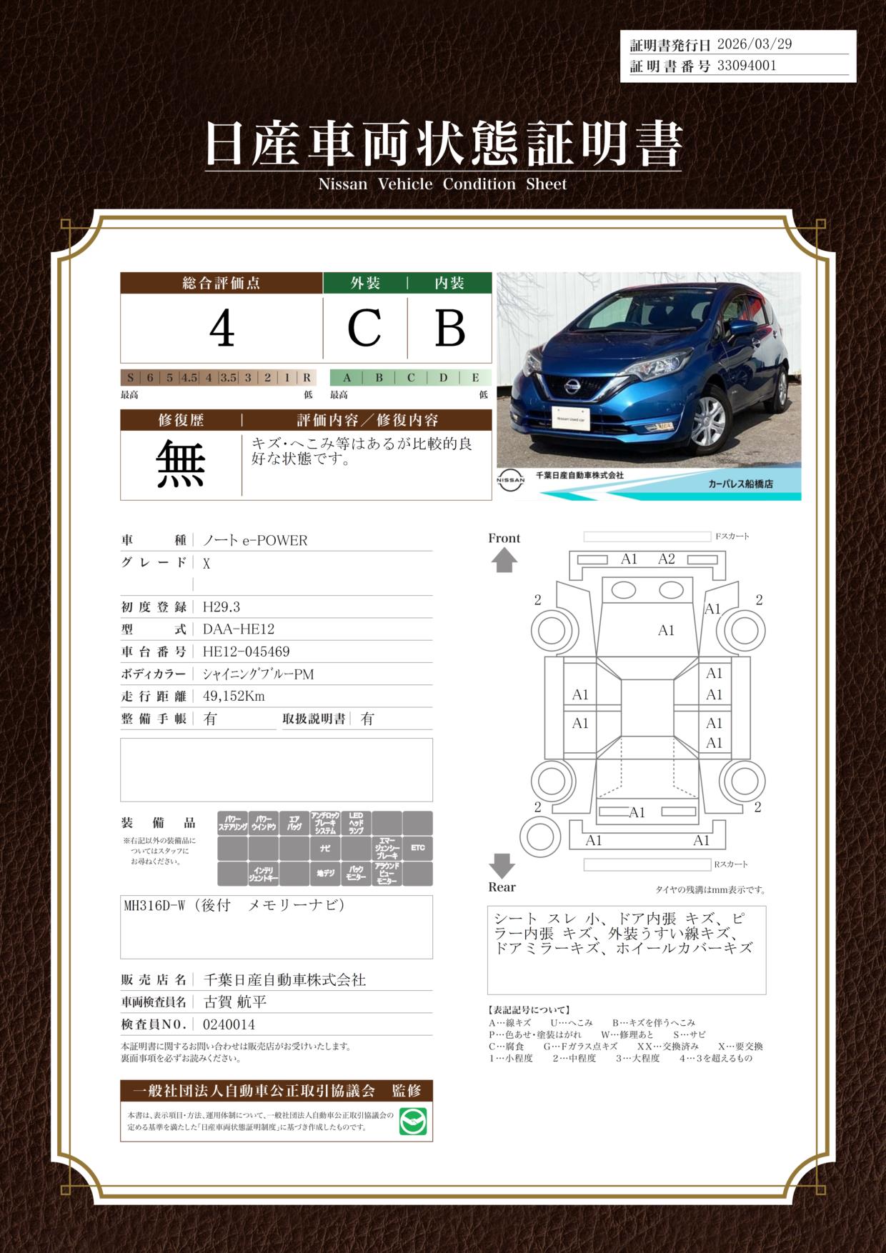●展示可能台数100台以上の大規模展示場で、千葉日産・日産プリンス千葉の在庫を一度にご覧いただける2社合同の中古車店舗です。 ●日産プレミアム認定中古車、日産認定中古車、日産電動車を中心とした高品質な中古車をご覧ください。 ●日産の中古車無料保証「ワイド保証」つきで安心です。他社の保証内容とぜひ見比べてください。 ●店内にはキッズスペースもございますのでお子様連れでも安心です。 ●船取県道(県道8号船橋我孫子線)沿いのお店です。 ●公共交通機関でご来場のお客様はお声がけください。お迎えにあがります。