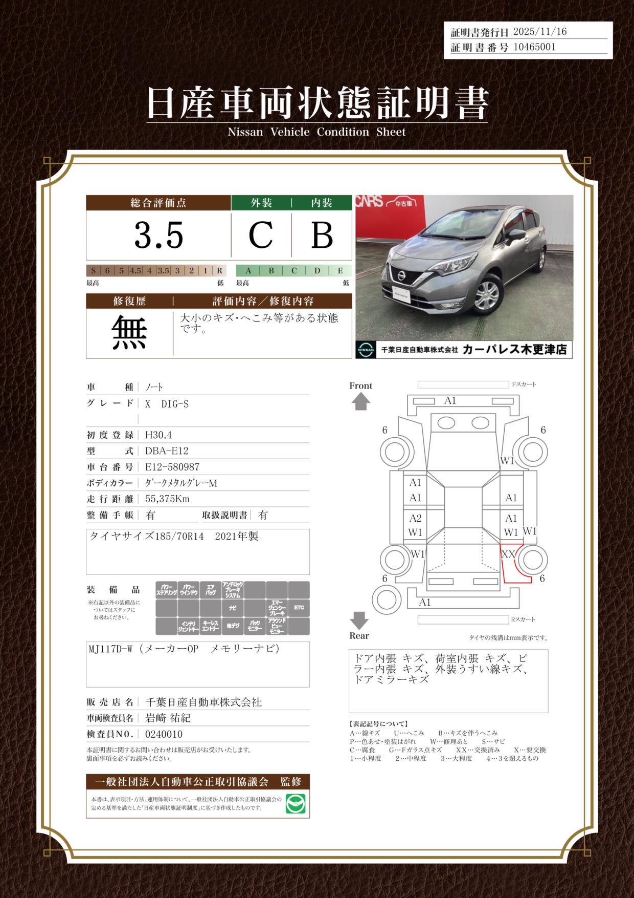 ノート 1200cc 1.2 X 純正ナビETC純正前後ドラレコエマージェン