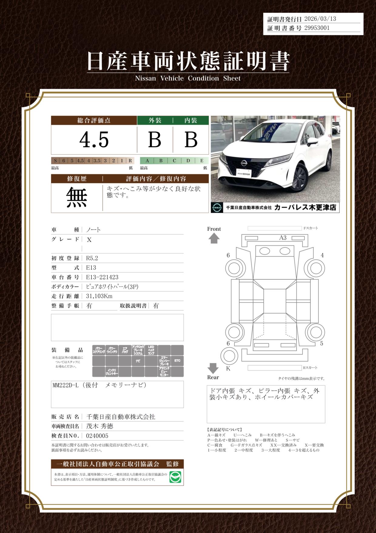 日産車両状態証明