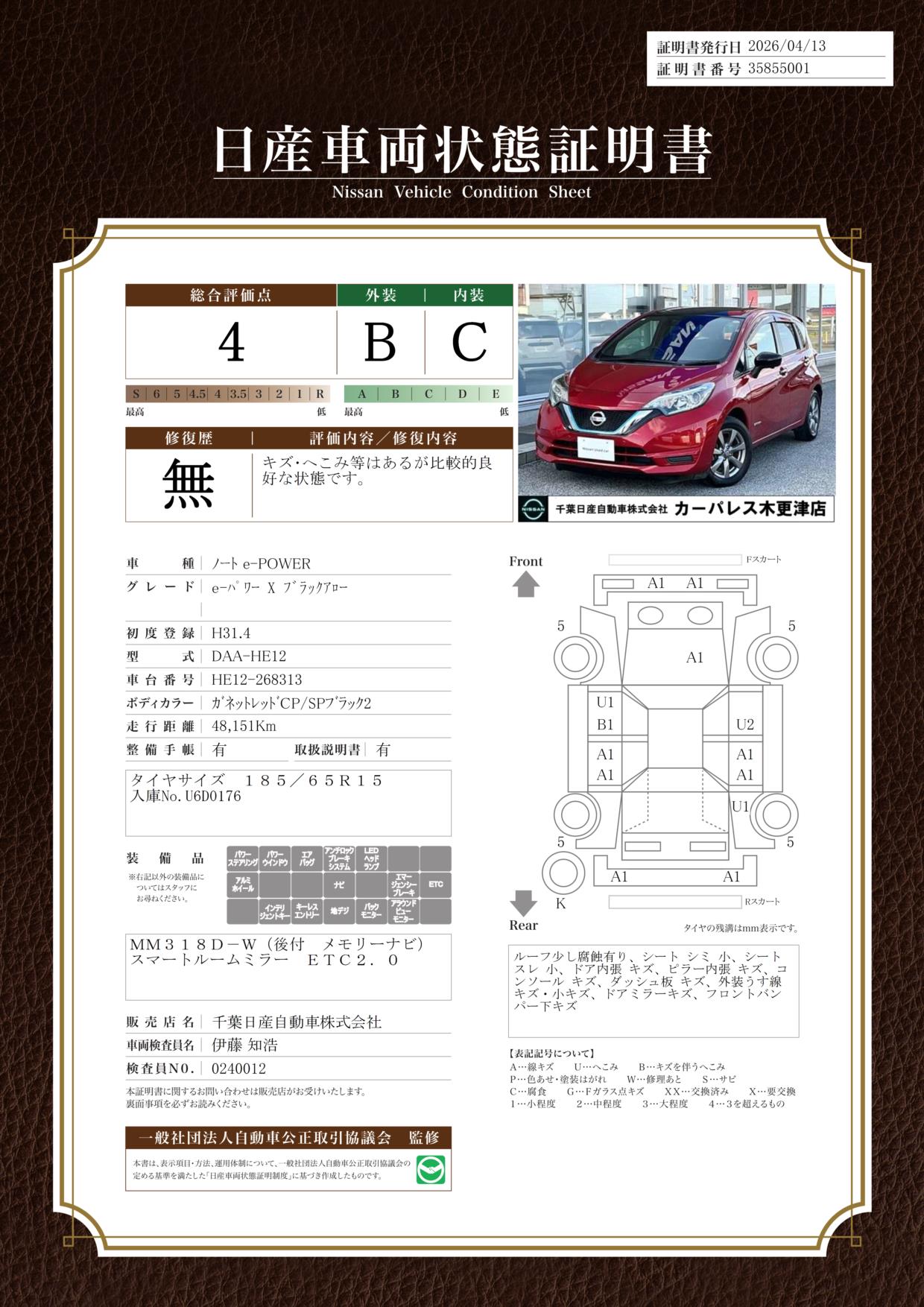 日産車両状態証明