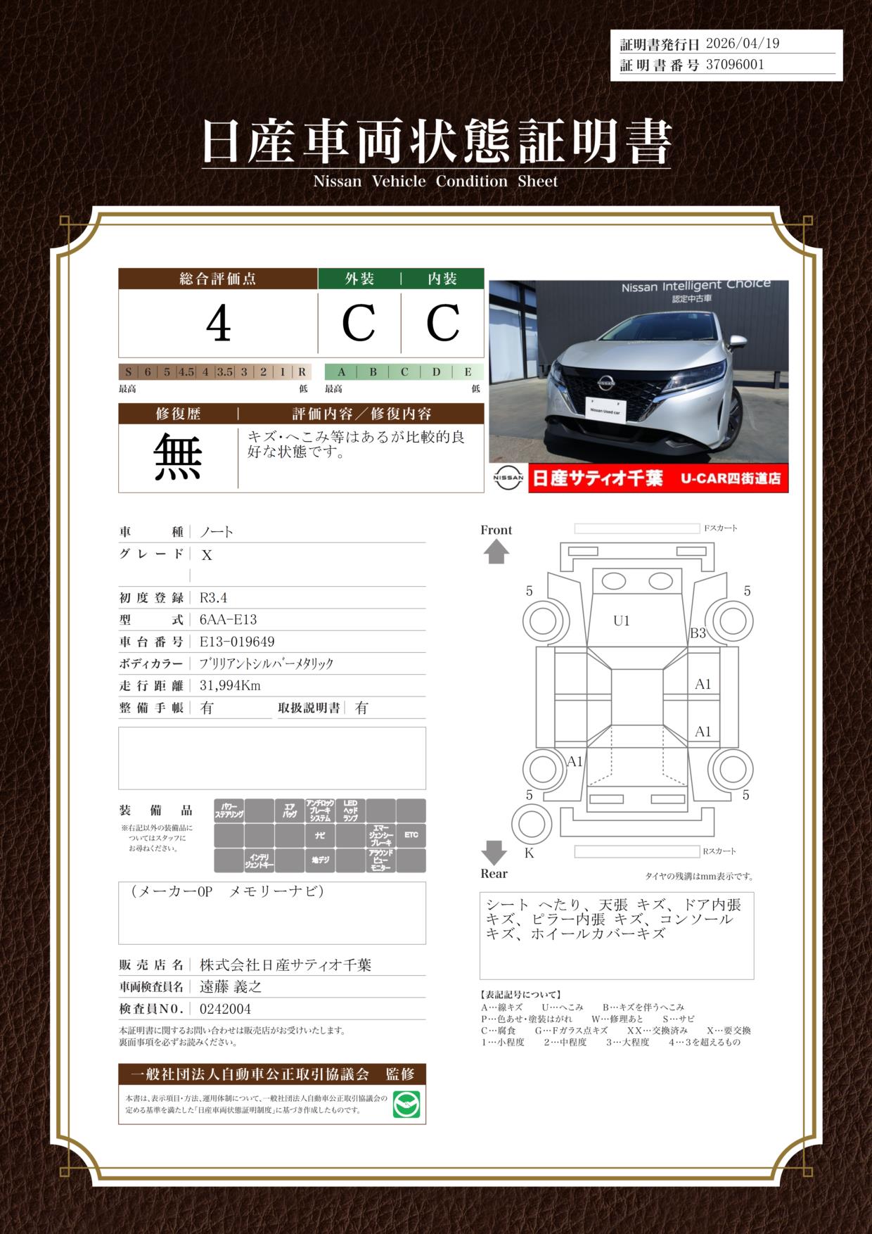 こちらのクルマは 「日産認定中古車」。 だから、4つの安心をお約束。