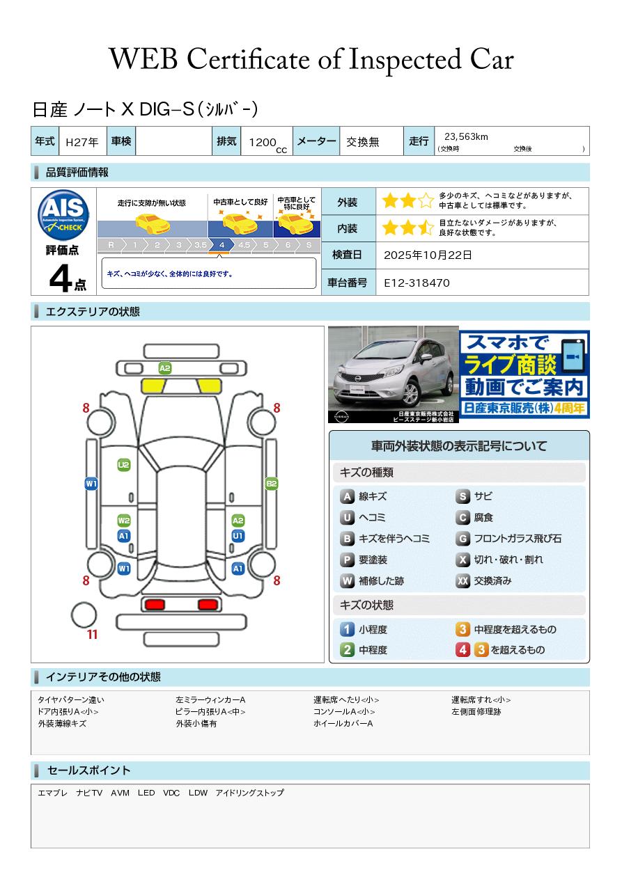 ノート 1200cc 1.2 X DIG-S エマブレ ナビTV AVM LED