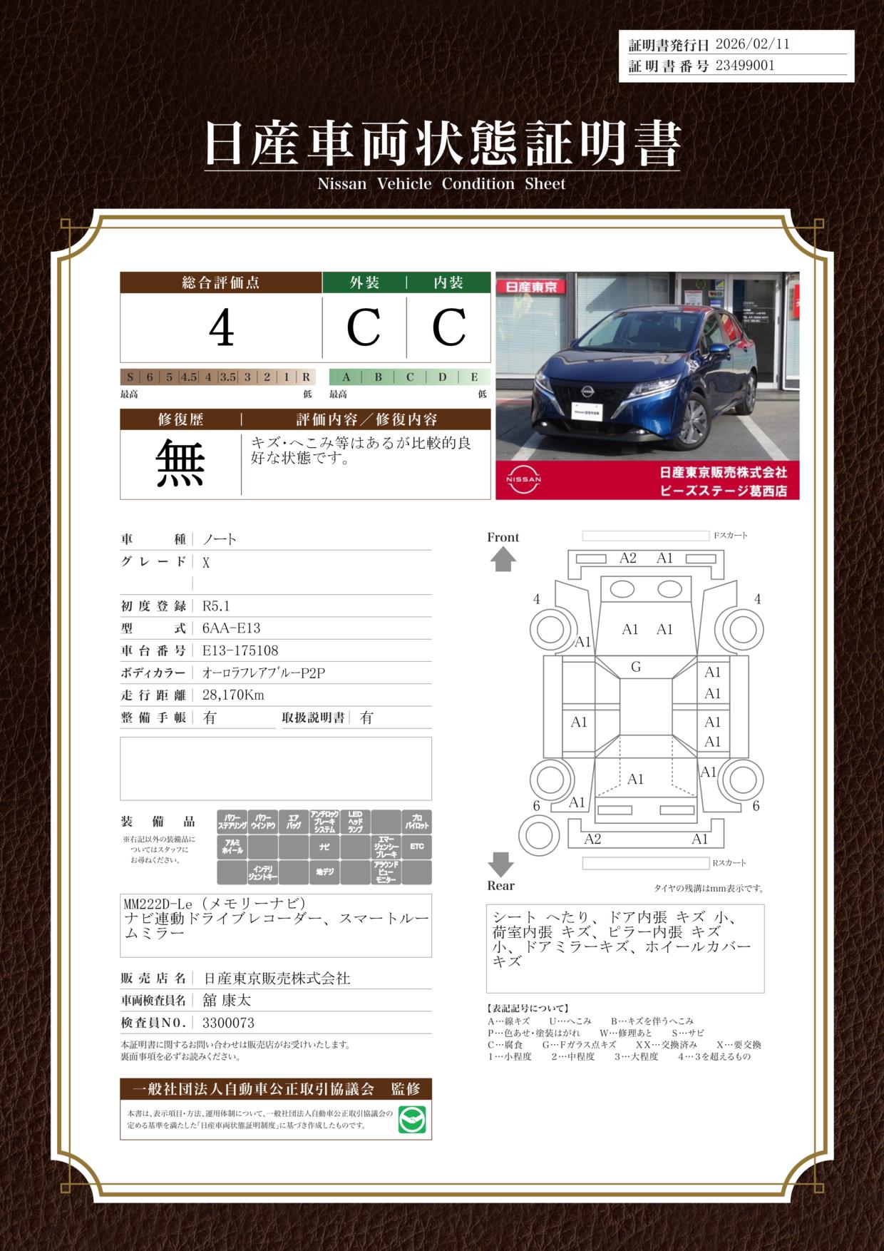 現状括弧書き内の年月まで車検有効期限が残っていますが、ご成約時に新しく車検を取り直します。なお取り直しの費用は車両価格に含まれています。