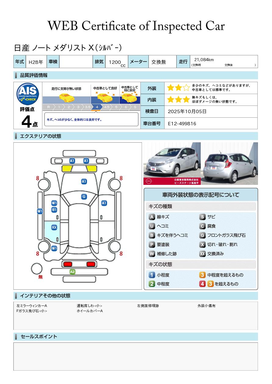 ノート 1200cc 1.2 メダリスト X 純正メモリーナビ