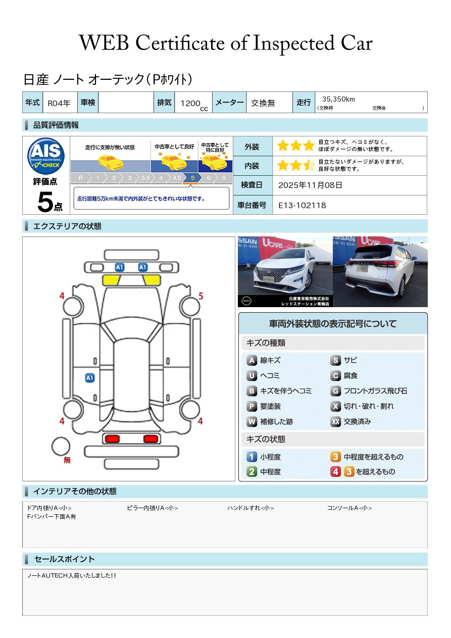 現状車検切れの状態ですが、ご成約時に新しく車検を実施します。車検費用は車両価格に含まれています。
