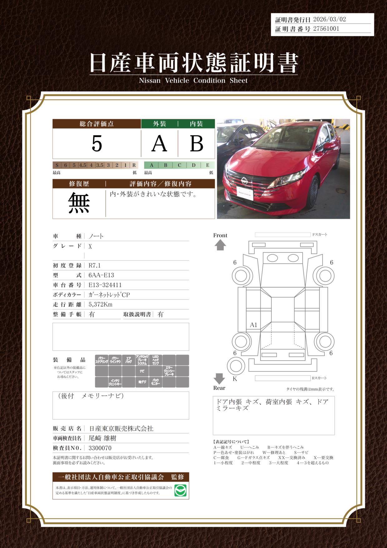 「車両状態証明書」は、査定協会監修のプロの検査員が公正かつ確かな基準で検査した”安心の証”です。