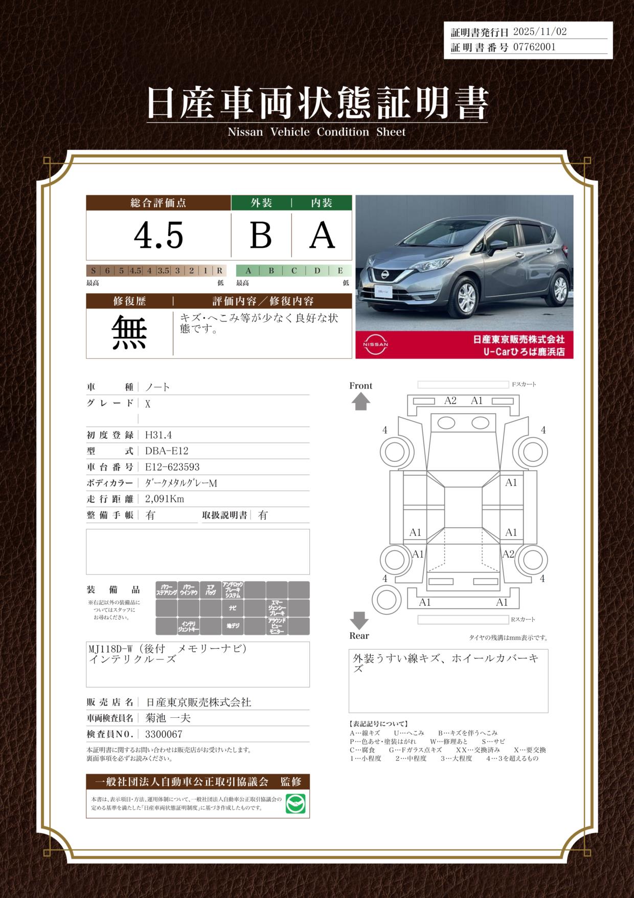 ノート 1200cc 1.2 X LEDヘッドライト・インテリジェントルーム