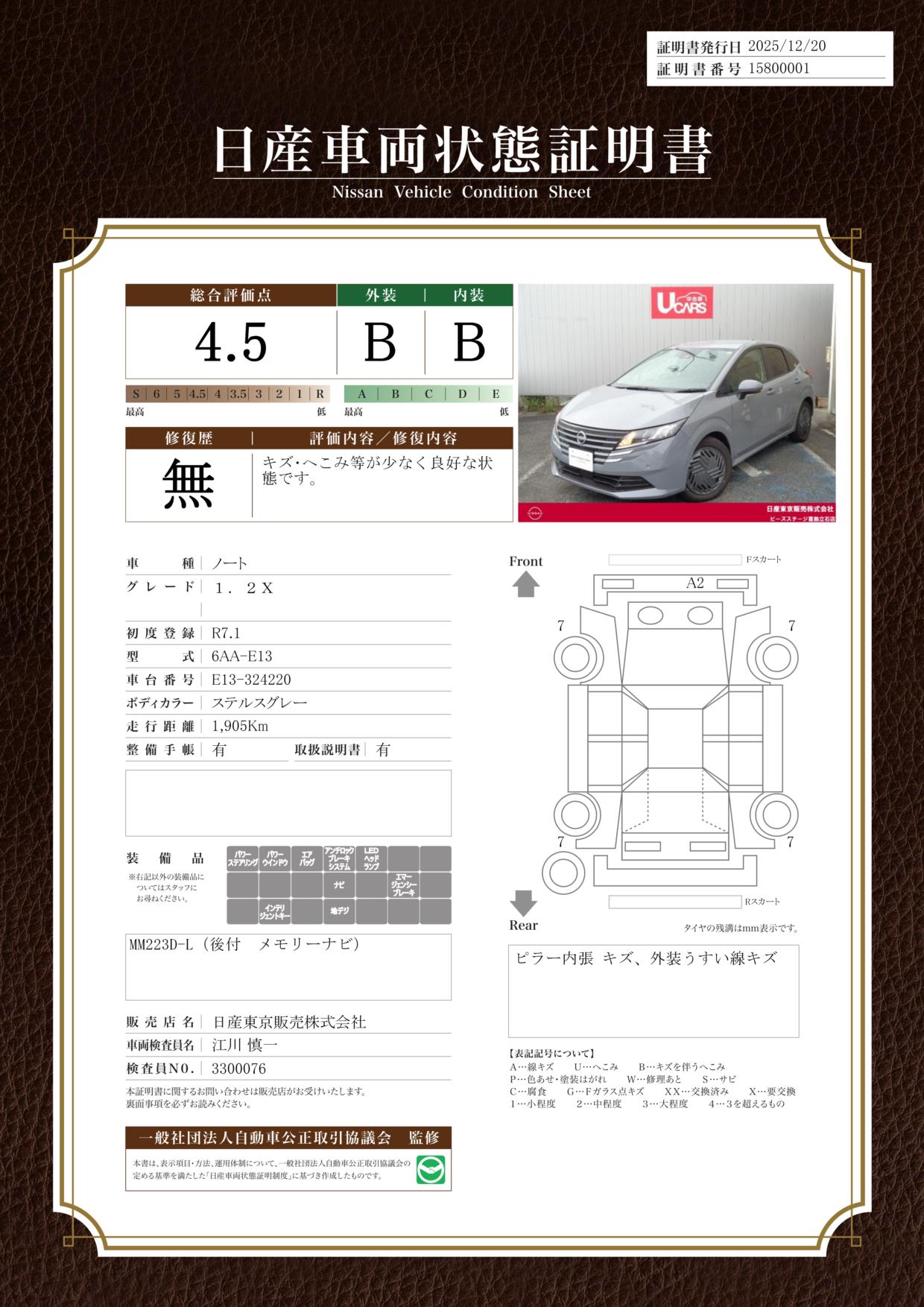 現状括弧書き内の年月まで車検有効期限が残っていますが、ご成約時に新しく車検を取り直します。なお取り直しの費用は車両価格に含まれています。