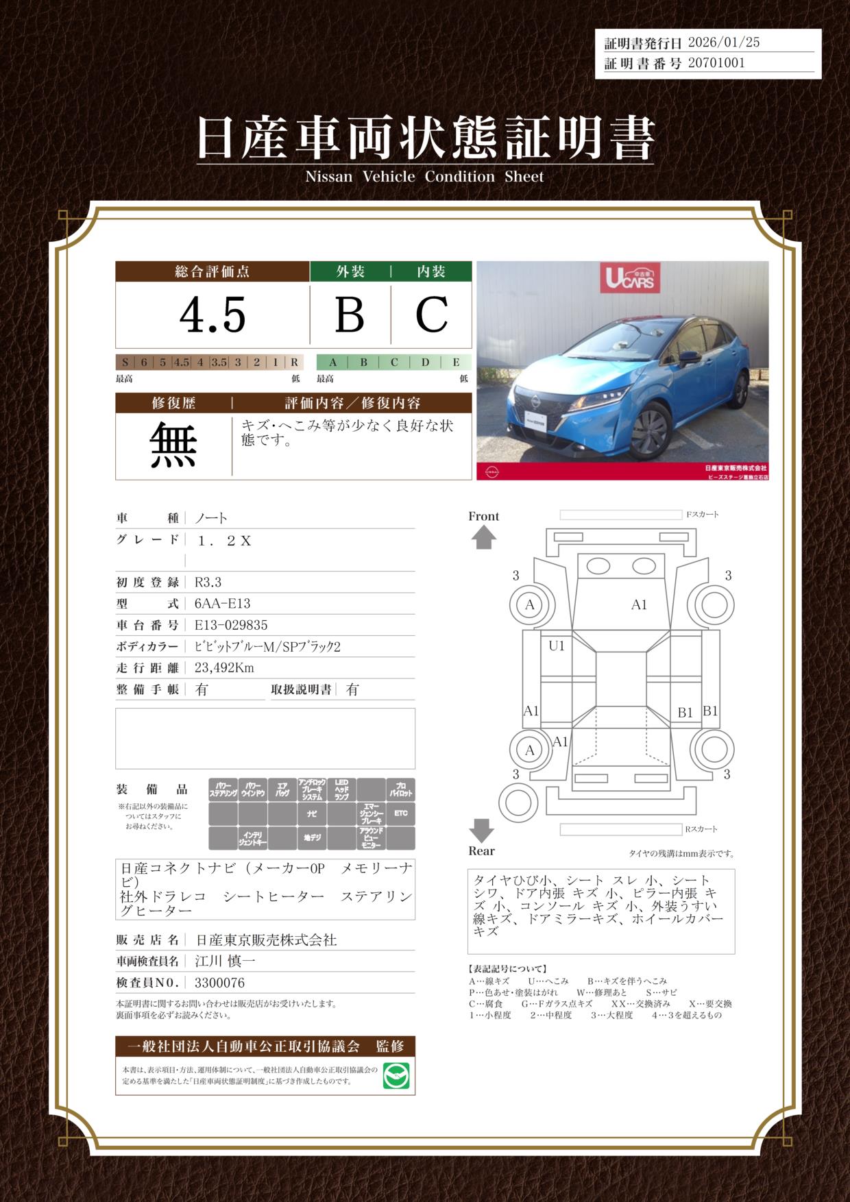 現状括弧書き内の年月まで車検有効期限が残っていますが、ご成約時に新しく車検を取り直します。なお取り直しの費用は車両価格に含まれています。