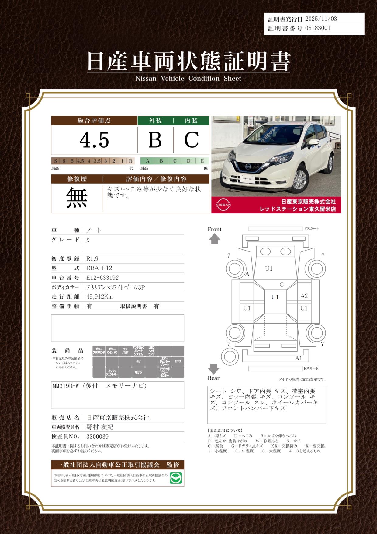 日産自動車認定の中古車販売店です。