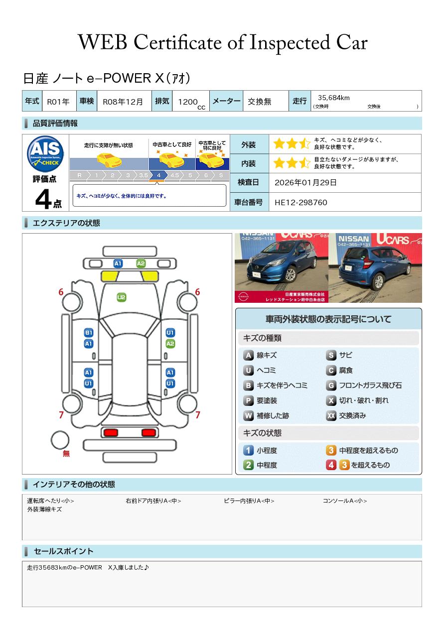 走行35683kmのe-POWER X入庫しました♪純正メモリーナビ、ナビ連動フロントドラレコ、社外後方ドラレコ、ETC、アラウンドビューモニター装備☆