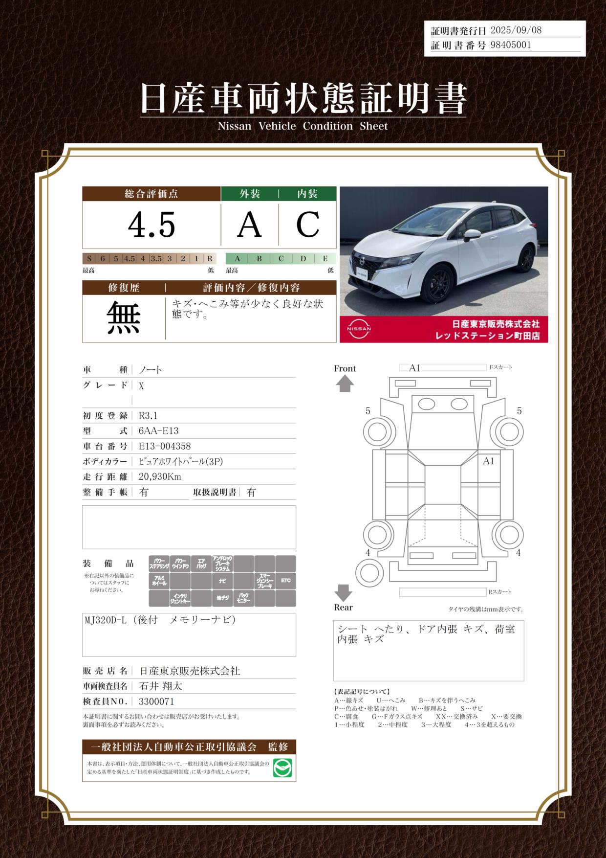 日産自動車認定の中古車販売店です。