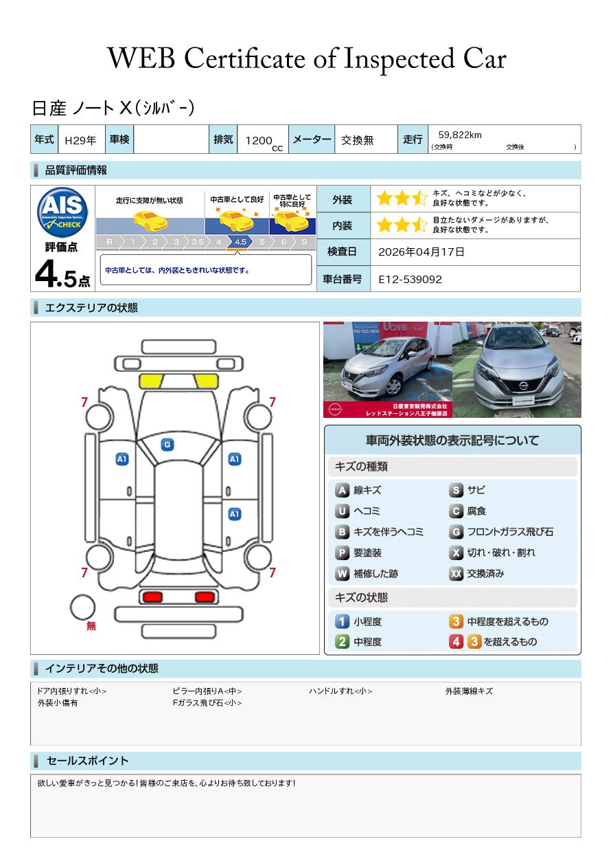 日産自動車認定の中古車販売店です。