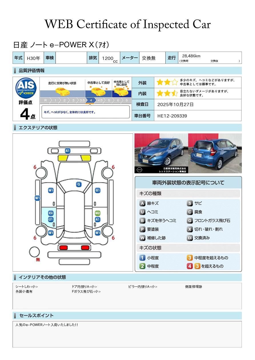 ノート 1200cc 1.2 X LEDヘッドライト・インテリジェントルーム