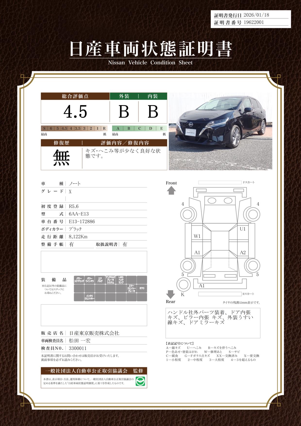 評価機関 : 日産車両状態証明