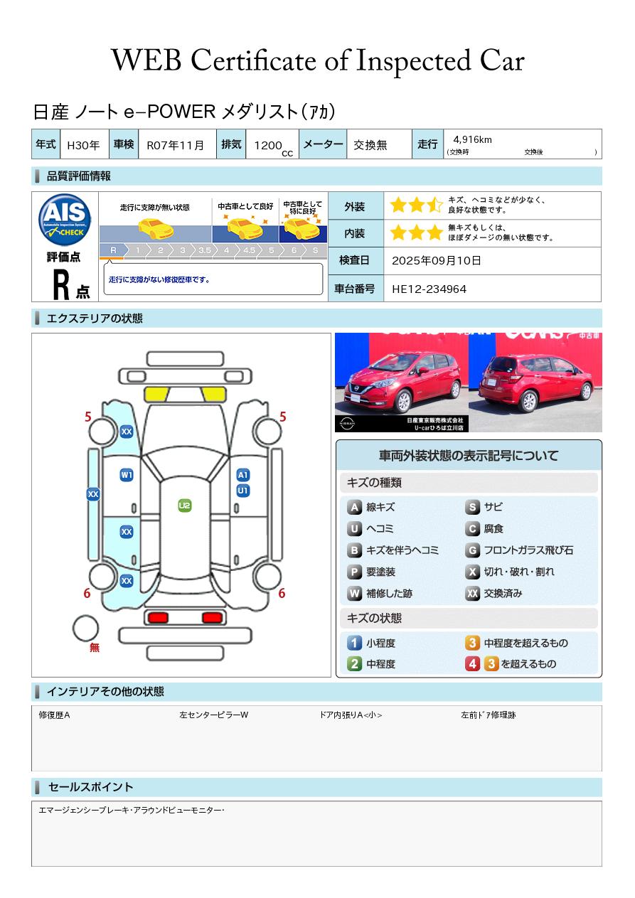 ノート 1200cc 1.2 e-POWER メダリスト 純正メモリーナビ インテリジェントキー