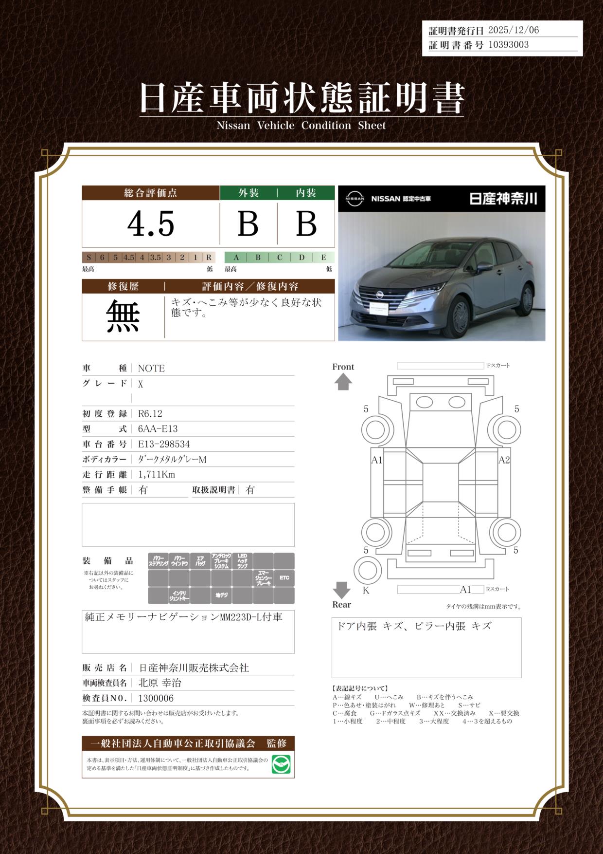 ノート 1200cc 1.2 X 試乗車UP・プロパイロット・前車内ドラレコ