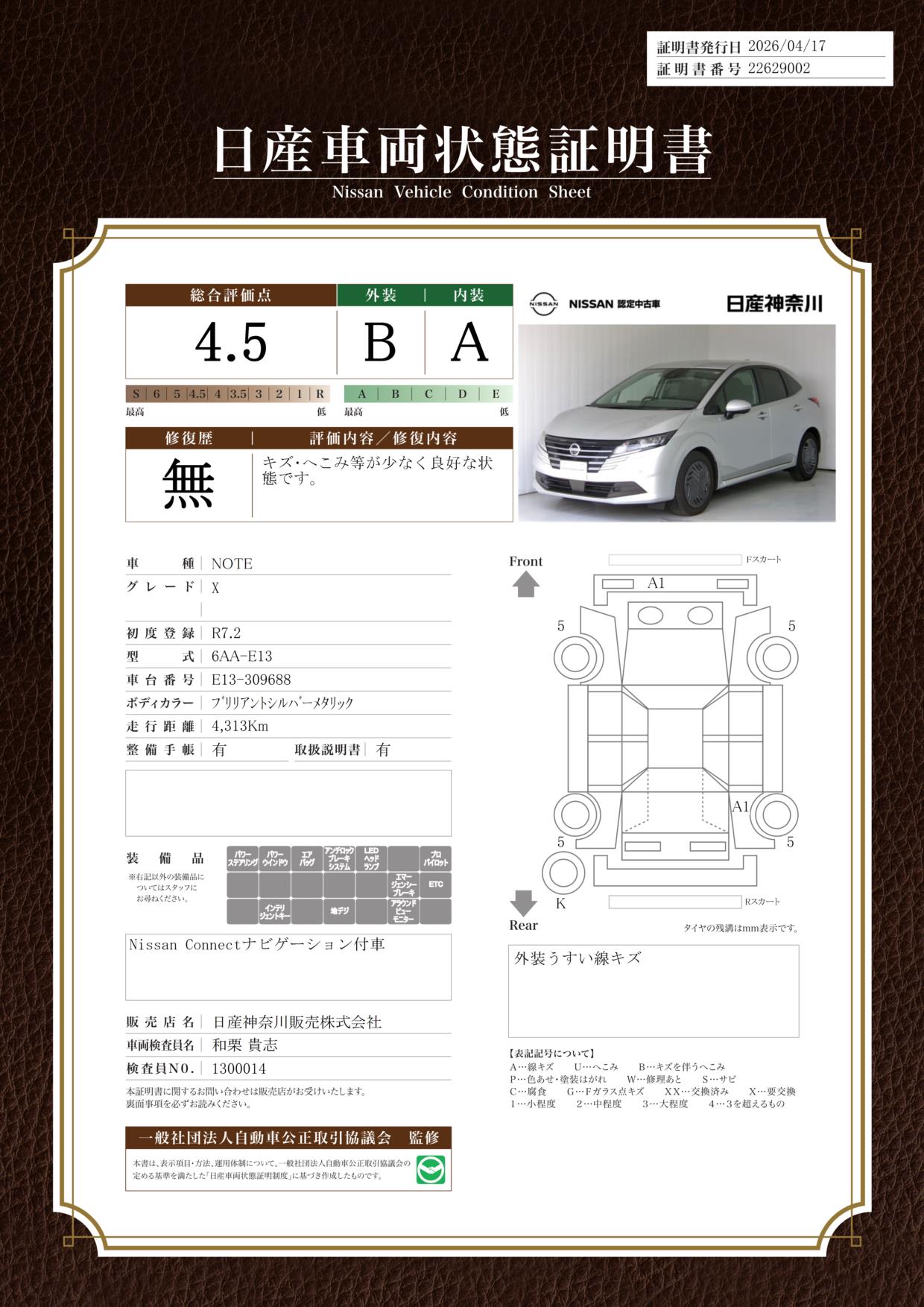 こちらのクルマは 「日産プレミアム認定中古車」。 だから、4つの安心をお約束。