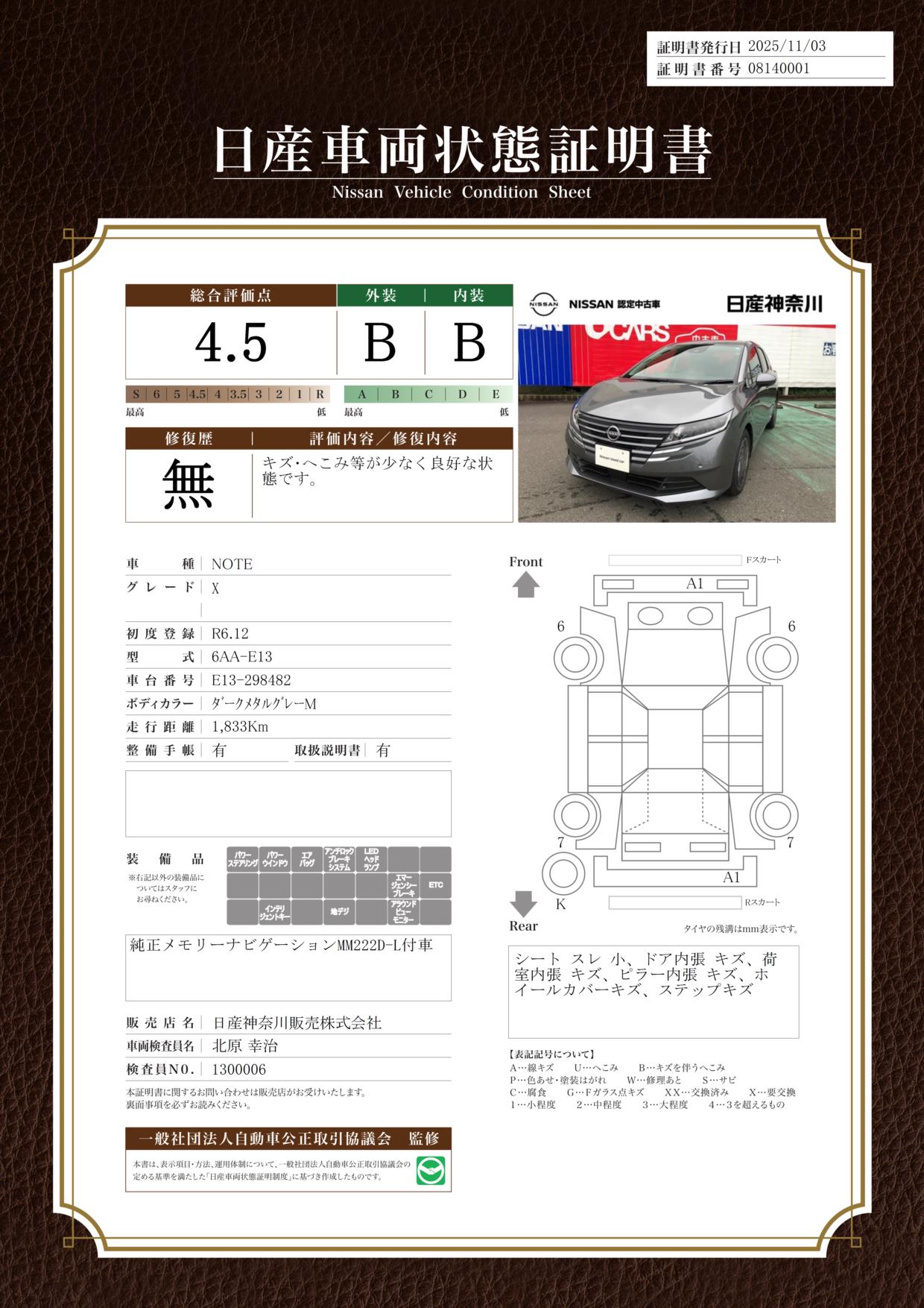 ノート 1200cc 1.2 X ナビ+AVM ETC2.0 Dレコ P-pilot LED 試乗車