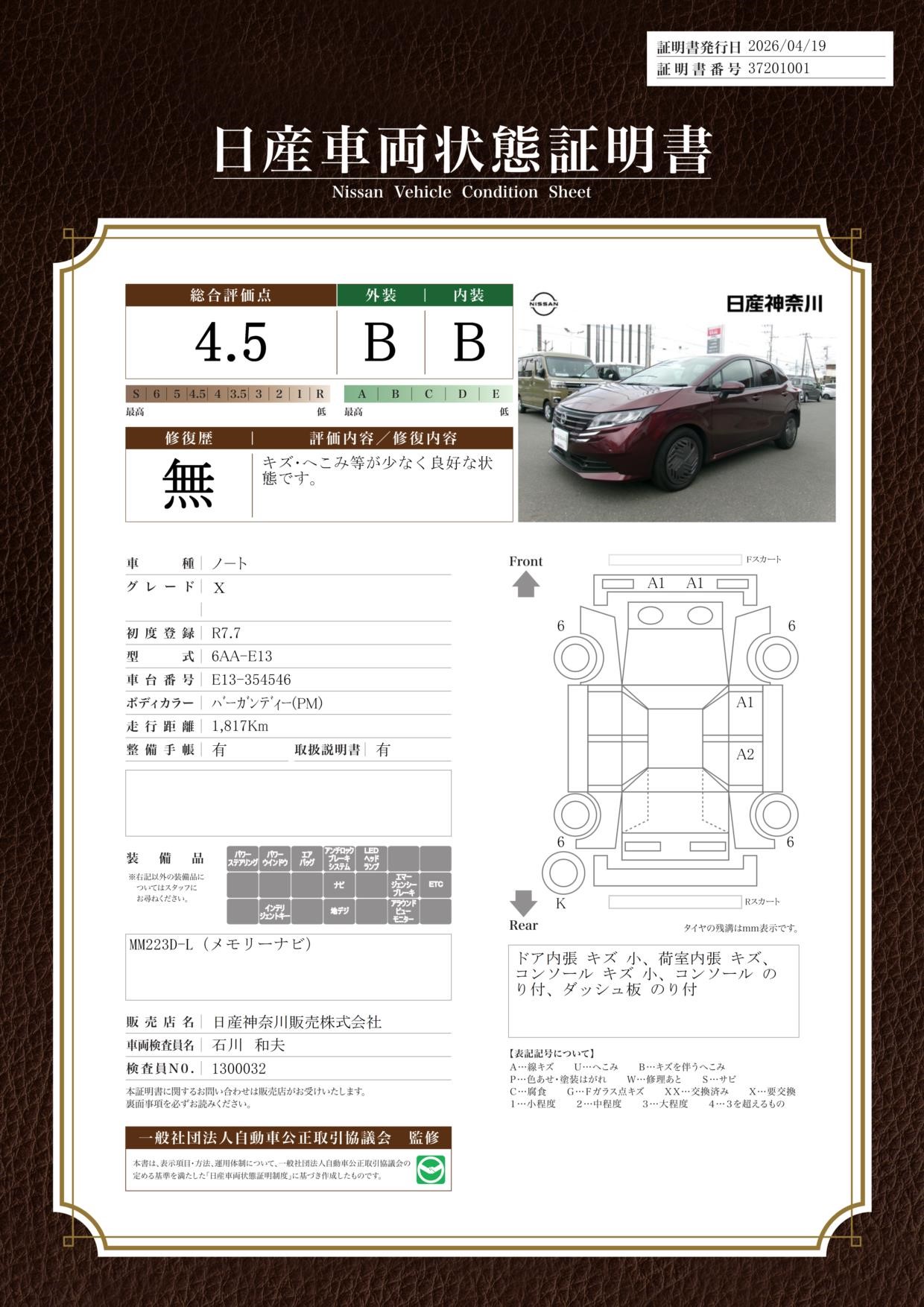 日産車両状態証明