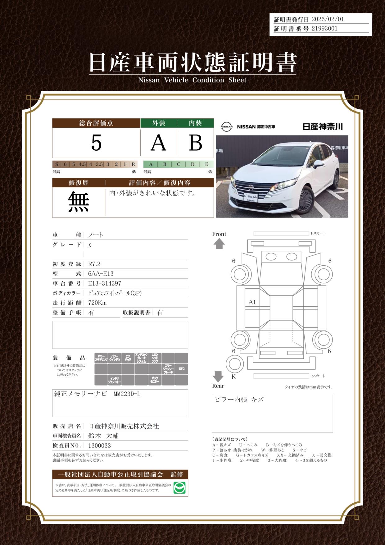 【禁煙車として使用 日産神奈川元展示試乗車】日本全国登録ご納車承ります。メーカー特別保証(初度登録から5年/10万キロ)継承。全国の日産サービス工場でメンテナンス可能です。