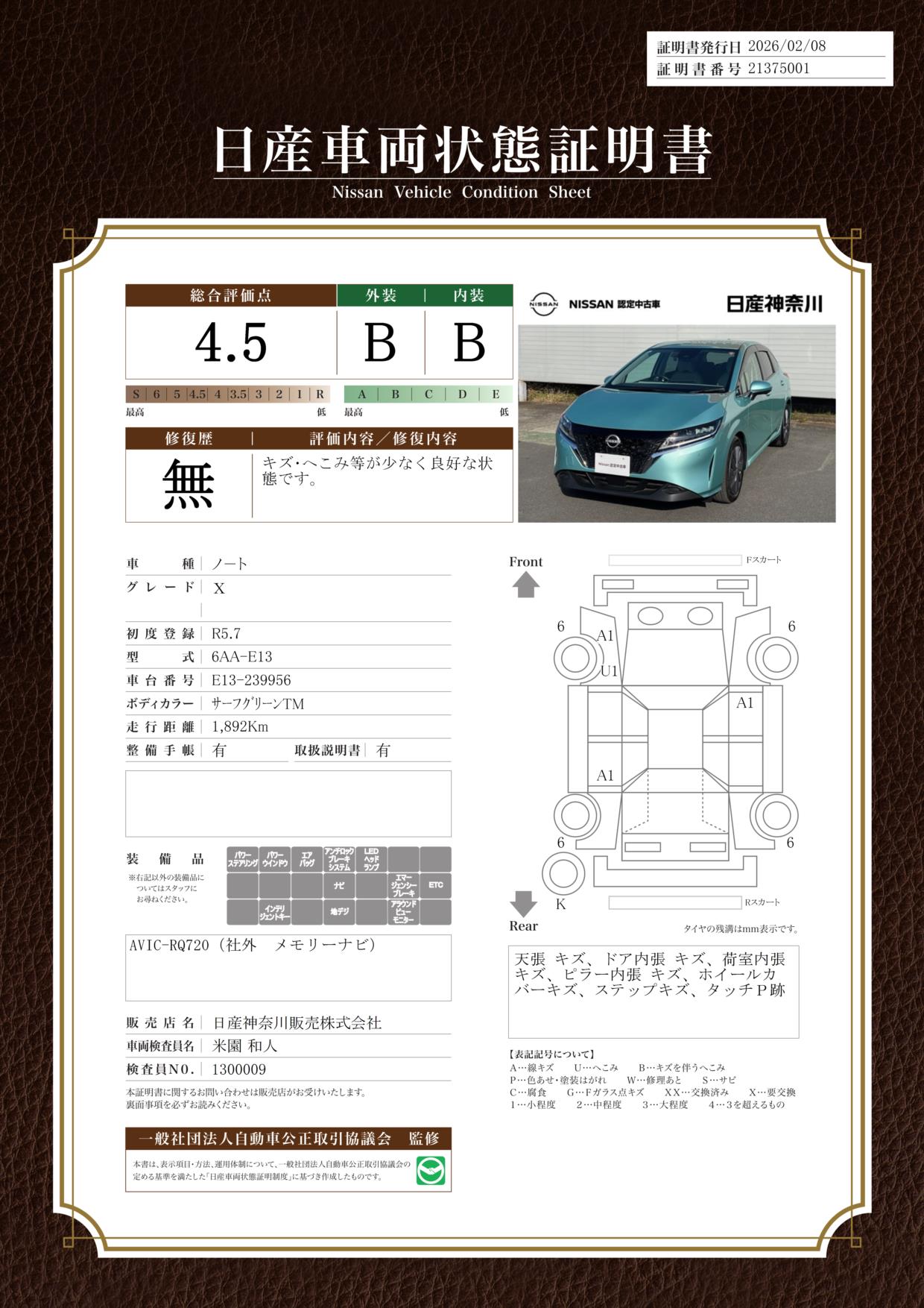 ノート 1200cc 1.2 X ナビ+AVM ETC2.0 Dレコ LED 当社試乗車