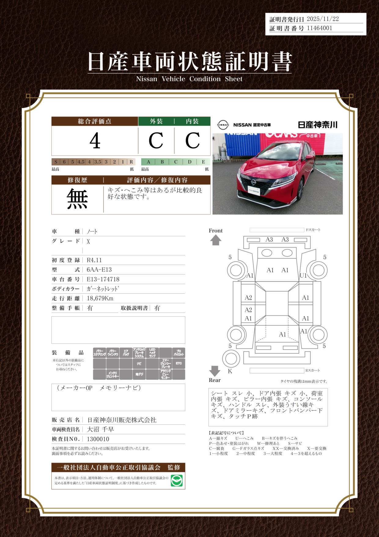 現状括弧書き内の年月まで車検有効期限が残っていますが、ご成約時に新しく車検を取り直します。なお取り直しの費用は車両価格に含まれています。