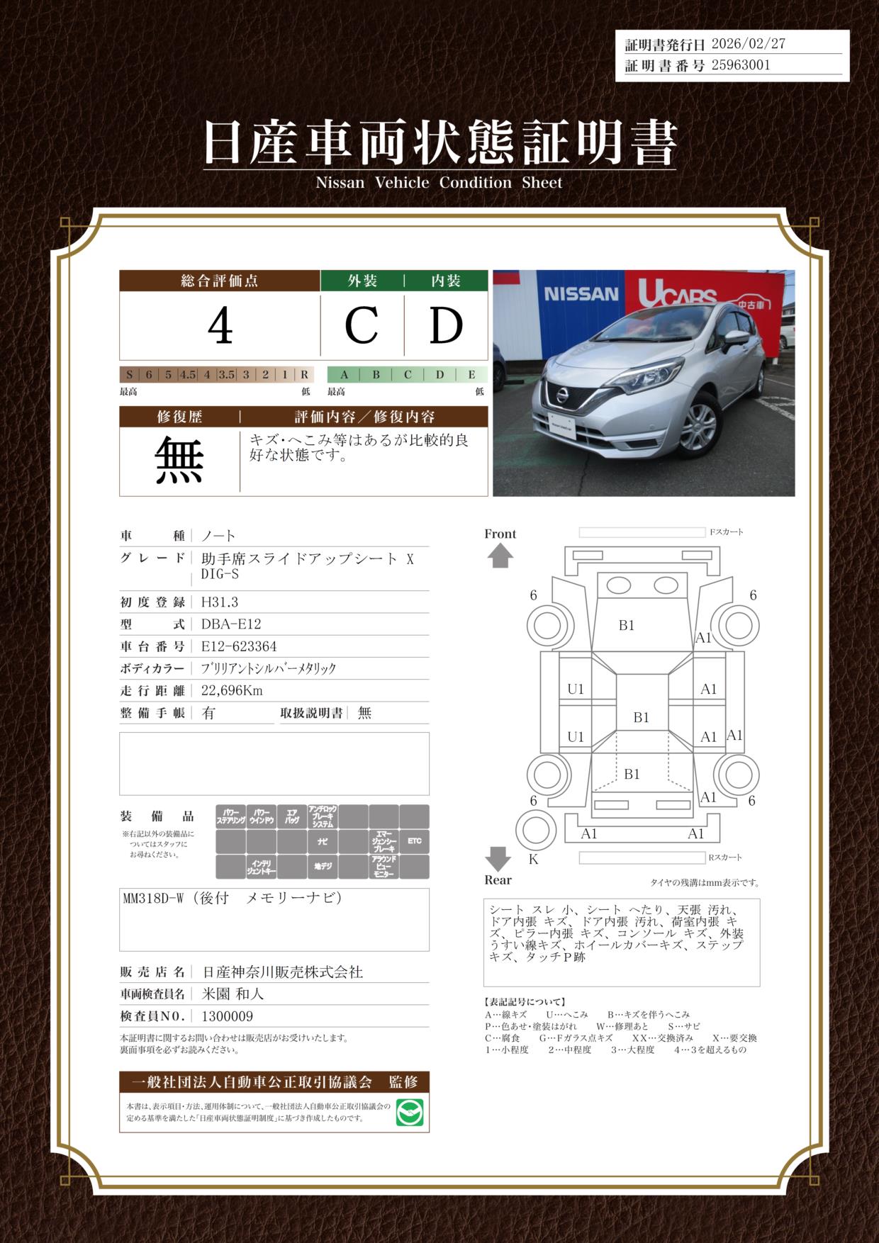 日産自動車認定の中古車販売店です。