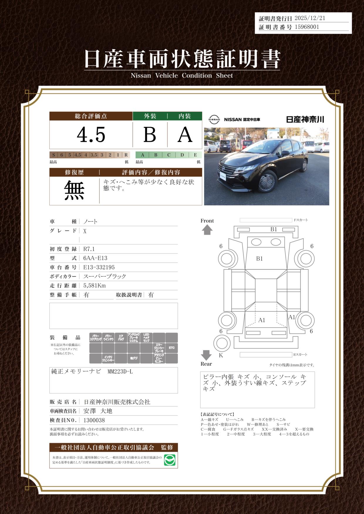 日産オリジナルナビ・アラウンドビューモニター・純正前後ドライブレコーダーステアリングスイッチ・純正フロアマット・LEDライト・エマブレ・VDC・サイド・カーテンエアバッグ