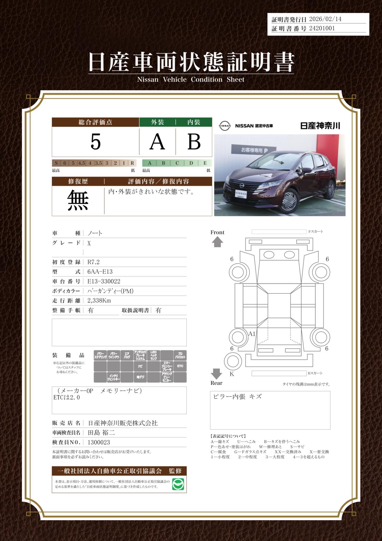 「車両状態証明書」は、査定協会監修のプロの検査員が公正かつ確かな基準で検査した”安心の証”です。