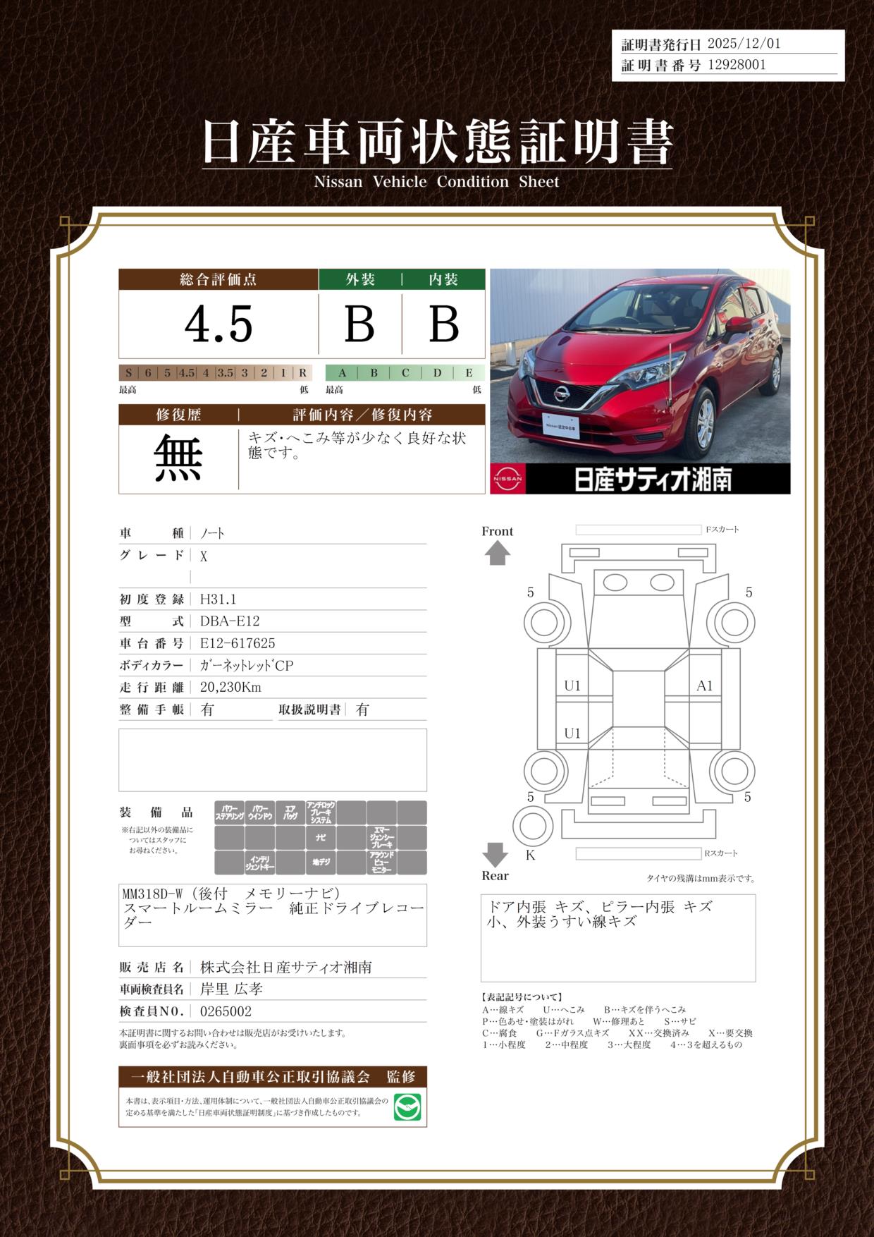 現状括弧書き内の年月まで車検有効期限が残っていますが、ご成約時に新しく車検を取り直します。なお取り直しの費用は車両価格に含まれています。