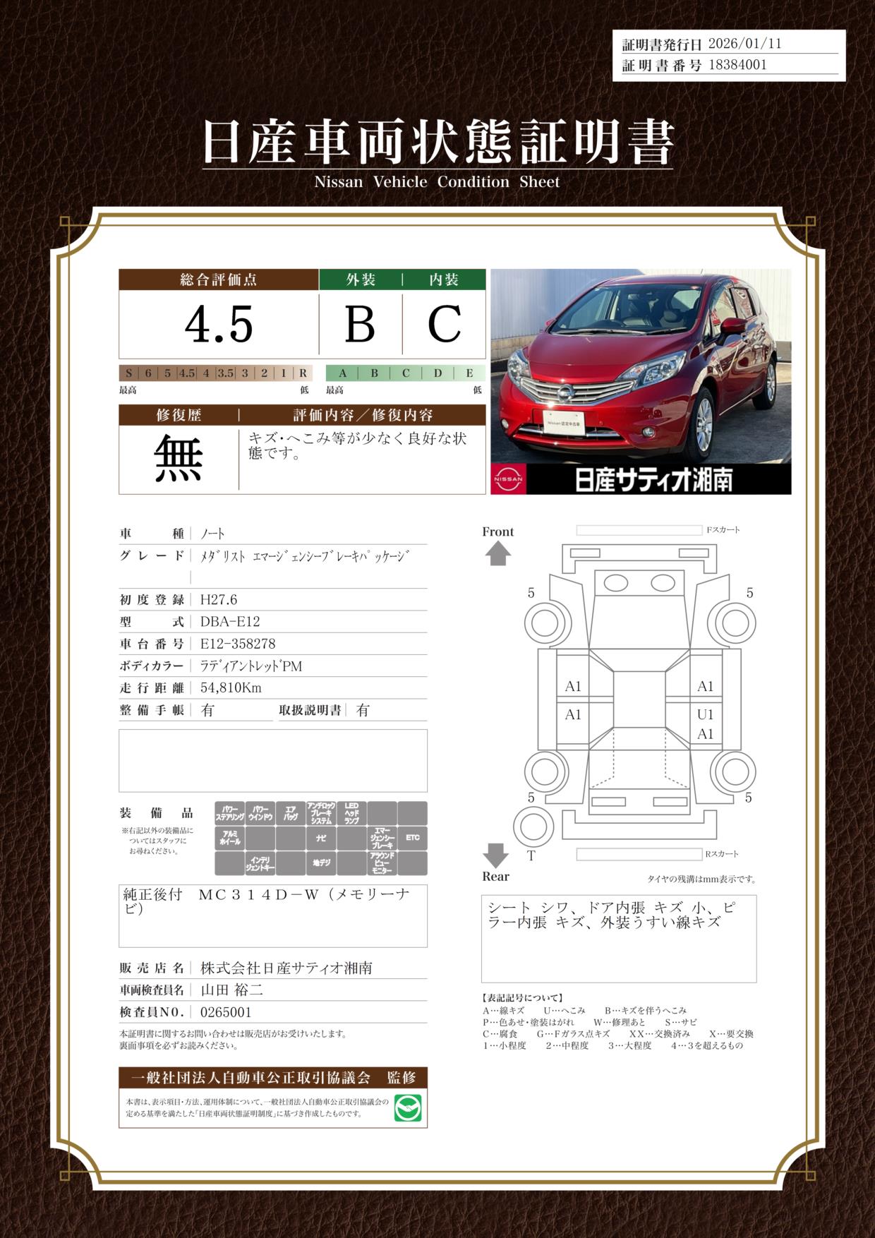 日産自動車認定の中古車販売店です。